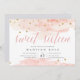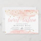 Ensino doce e chico, dezesseis convites em cor-de-rosa pincelado e cinza apresentam cinzas de cor-de-água rosa pincelada no topo e no fundo com brilho dourado sujo e "doce dezesseis" em letras de caligrafia cor-de-água rosa. Personalize com os seus doces 16 detalhes de festa de aniversário debaixo de uma cinza elegante.