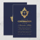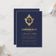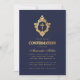 Convite Confirmação Azul Marinho Elegante Brasão Dourado F