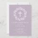 Lindos convites de Confirmação com uma delicada coroa floral e cruz em fundo lavanda. Sacudir nosso convite para ver uma coordenação de volta para um toque especial extra. Visite nosso compro para ver toda nossa coleção religiosa.