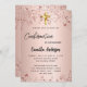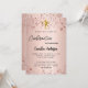 Um fundo de aparência metálica falsa rosa dourado. Decorado com estrelas rosa douradas. Personalize e adicione um nome e detalhes. O nome é escrito com um script de estilo manuscrito