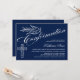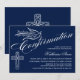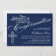 © Designs socialitas. Nosso belo convite para confirmação de caligrafia tem uma pomba, cruz e belo texto caligráfico. O fundo é azul escuro. Um convite encantador que é neutro em termos de gênero e que pode ser usado para um menino ou menina. Substitua facilmente nosso texto de modelo com o seu. Todos os elementos de design podem ser movidos, redimensionados ou excluídos.