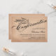 © Designs socialitas. Nosso belo convite para confirmação de caligrafia tem uma pomba e cruz nas costas, com um fundo de papel envelhecido. Um convite encantador que é neutro em termos de gênero e que pode ser usado para um menino ou menina. Substitua facilmente nosso texto de modelo com o seu. Todos os elementos de design podem ser movidos, redimensionados ou excluídos pressionando o botão "personalizar".