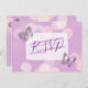 Cartões de confirmação de jantar de recepção de casamento com borboletas roxas e lavanda.