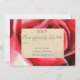 Um moderno e elegante RSVP de casamento rústico com uma rosa vermelha carmesim macro de uma pintura original em aquarela da artista Sacha Grossel. O texto personalizável está em escrita elegante contra um fundo de tema de papel artesanal. RSVP de convite de casamento artístico original e único. Um design simples e elegante para o seu dia especial. Casamento com tema de rosa vermelha ou casamento rústico artístico moderno.