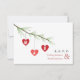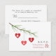 Um convite de casamento com uma ilustração de três corações vermelhos pendurados num ramo de pinheiro. Personalize com suas iniciais no coração. Personalize o texto na frente e no verso.