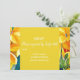 Um moderno, rústico e elegante RSVP de casamento com flores amarelas de uma pintura original aquarela da artista Sacha Grossel. O texto personalizável está em escrita elegante contra um fundo amarelo de Primavera. RSVP de casamento artístico original e único. Um design simples e elegante para o seu dia especial. Casamento com tema de flores amarelas da Primavera ou casamento moderno no campo.