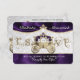 Tipografia de confirmação de presença dourada e carruagem dourada com dossel de aparência de veludo aparado com acento decorativo dourado e fundo de damasco branco.