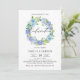 Convide convidados para o seu evento com este convite de confirmação. Ele apresenta uma camada floral de cor d'água de híbridos e rosas azuis e roxos. Personalize adicionando seus detalhes. Este convite de confirmação de hydrangea azul é perfeito para eventos de primavera e inverno. Itens correspondentes estão disponíveis.