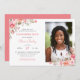 Barato personalizado imprimiu convites de Santa Confirmação personalizados com detalhes e foto do evento. Este bonito design botânico apresenta uma moldura de aquarela de flores rosa-pinceladas e corais. Use as ferramentas de design para personalizar o texto, editar as fontes e as cores ou adicionar suas próprias fotos para criar um convite floral rústico para o Sacramento Cristão Católico de Confirmação.
