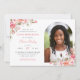 Barato personalizado imprimiu convites de Santa Confirmação personalizados com detalhes e foto do evento. Este bonito design botânico apresenta uma moldura de aquarela de flores rosa-pinceladas e corais. Use as ferramentas de design para personalizar o texto, editar as fontes e as cores ou adicionar suas próprias fotos para criar um convite floral rústico para o Sacramento Cristão Católico de Confirmação.