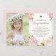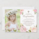 Convite de confirmação de fotos florais cor-de-rosa esbranquiçada. Apresenta peônias cor-de-água rosa, rosas, hálito e folhagem do bebê. Este convite de peões e rosas cor-de-rosa é perfeito para confirmações de primavera e verão. Personalize adicionando seus próprios detalhes.
