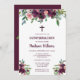 Convite Confirmação de Girls Floral de Aquarela Burgundy