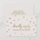 Este cartão de resposta para site de casamento com bolinhas douradas é perfeito para um casamento elegante. O design simples apresenta confetes dourados sofisticados em um fundo champanhe cremoso com bela caligrafia em folha dourada falsa. Personalize o cartão de resposta online com o seu RSVP por data e endereço do site de casamento. Se os seus convidados não precisarem de uma senha para acessar o site, você pode substituir o texto por uma mensagem curta e doce para os seus convidados ou um método alternativo de RSVP.