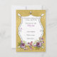 Este cartão de resposta para casamento em aquarela floral com folha dourada FAUX, roxo e branco tem uma área de texto desenhada à mão e caprichosa delineada em preto com flores variadas em tons de rosa, roxo, pêssego com folhas verde-oliva e amarelo-dourado ao longo da parte inferior do convite que também são delineadas em preto. Se você precisar de itens correspondentes neste design, ou se precisar de ajuda para personalizá-lo com suas informações, por favor envie um e-mail para niteowlstudio@gmail.com. ****POR FAVOR, NOTE que tudo será impresso como aparece no seu monitor.