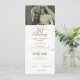 Um convite e cartão de confirmação de presença tudo-em-um para você personalizar com sua foto de casamento favorita e os detalhes da sua celebração de bodas de ouro de 50 anos em tipografia dourada chique. O verso apresenta confetes em coração dourados. O convite inclui um cartão de confirmação de presença que pode ser destacado e detalhes de informações do convidado. Criado por Thisisnotme©