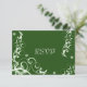 Esta Confirmação de Presença para Recepção de Casamento Green Flourish apresenta redemoinhos e flores brancas elegantes em verde. Procure por Convites de Casamento e Anúncios de Salve a Data correspondentes.