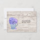 Este cartão de confirmação de presença para recepção de casamento Hydrangea Country apresenta uma flor de hydrangea em um jarro de vidro com depressões. Procure por convites de casamento e anúncios de Save The Date correspondentes.