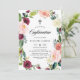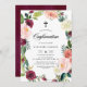Convide familiares e amigos para o seu evento com este convite de confirmação floral. Apresenta uma coroa aquosa coroa floral de peões, rosas, mães e outras flores de burgundy, blush, marfim e laranja, com sotaque foliar. Este convite floral é perfeito para confirmações de outono ou outono. Personalize adicionando nomes, data, hora, local e outros detalhes do evento. Você pode personalizar ainda mais a parte de trás do convite mudando a imagem de trás para uma foto ou qualquer outra imagem.