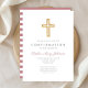 Convite Confirmação de Rapariga Religiosa em Stripes Rosa