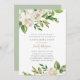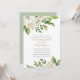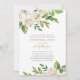Impresso personalizado barato Convites de confirmação com uma elegante borda floral pintada em sotaques de folha de ouro brancos, verdes e falsos. Personalize o modelo com os detalhes do evento ou use as ferramentas design para personalizar o texto, escolha qualquer cor de fundo e edite as fontes para criar seu próprio design de convite exclusivo. O verso apresenta um fundo verde bonito ou usa o espaço para adicionar texto ou fotos, se necessário. Este lindo design floral neutro é perfeito para qualquer estação.