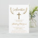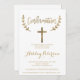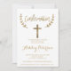 Faux datipografia de folha de ouro branco elegante com confirmação de cruz de ouro. Um convite de festas moderno de batismo com esta moderna, simples, elegante e elegante tipografia de pincel de ouro amarelo-escamudo com letras de mão num fundo branco. Perfeito para uma festa simples, elegante e moderna. Se precisar de algum texto mudado e personalizado, não hesite em entrar em contato comigo!