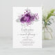 Rosas roxas de ameixa escura e falsa chamada de confirmação de folhagem tropical com brilho prateado com tipografia elegante.