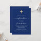 Um moderno, elegante e convite. Um fundo azul marinho decorado com uma cruz ouro. Personalize e adicione um nome e detalhes. Texto branco.
