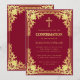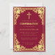 Convite Confirmação Menina Cruz Dourada Falsa Bordô Elegan