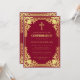 Este convite de confirmação elegante em burgundy e dourado com um ar vintage, recomendado para uma menina, tem uma moldura ornamentada em folha de ouro falso com decorações barrocas elegantes em fundo burgundy. Acima do texto há uma cruz religiosa em folha de ouro falso. Exceto pela ocasião "Confirmação", que também está em folha de ouro falso, todo o texto pode ser personalizado e tem uma cor amarelo-dourado semelhante à moldura de ouro falso.