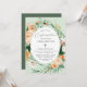 Lindos convites de Confirmação que incluem um elegante tom pastel neutro, elegante e moderno, quadro floral botânico em tons suaves de pêssego, laranja, pincel macio, amarelos e muitos tons de verde de sábio verde a verde brilhante e profundo. Seus detalhes personalizados são exibidos em um elevado layout tipográfico que coloca a doce garota na frente e no centro.
