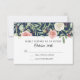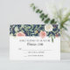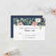Cartão de Resposta RSVP | combina com o casamento Azul Marinho e Rosa, Conjunto de Convites de Casamento Coroa de Rosa Marfim. Floral pintado à mão com aquarela com folhas e folhagem da floresta de eucalipto verde. O verso tem um fundo azul marinho com uma coroa floral que destaca o texto em caligrafia: Rsvp. Direitos autorais, Audrey Jeanne Roberts.