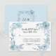 Flores aqua pálido e azul gelo com estilo boho. Folhas e folhagens botânicas selvagens colhidas são desenhadas à mão e pintadas em um design de linha moderna para uma paleta de cores azul e branco fresca e atemporal com um toque contemporâneo. Direitos autorais, Audrey Jeanne Roberts.