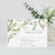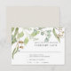 Cartão de resposta de confirmação de presença com opções de menu (ou simplesmente apague o campo do modelo se não for necessário). Folhas de eucalipto pintadas à mão em aquarela e design de folhagem verde para um casamento Boho, rústico em vinícola ou ao ar livre estilo Califórnia. Direitos autorais reservados a Audrey Jeanne Roberts.