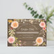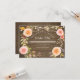 Fundo de madeira de celeiro rústico escurecido com luzes cintilantes, para um estilo country quente e confortavelmente elegante. Cartão de resposta RSVP é parte de um conjunto completo de convite de casamento e papelaria para festa. Floral de aquarela pintado à mão com rosas, ranúnculos, botões, samambaias, folhas e folhagens de cores suaves de outono. Desenho com direitos autorais, Audrey Jeanne Roberts.