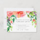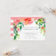 Cartão de resposta de confirmação de presença com opções de menu (ou simplesmente apague o campo do modelo se não for necessário). Apresenta um design floral moderno e solto, pintado à aquarela, para um casal contemporâneo. Paleta de cores rosa quente, coral, laranja, pêssego, lavanda, roxo e verde. Direitos autorais de Audrey Jeanne Roberts, todos os direitos reservados.