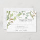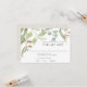 Cartão de resposta de confirmação de presença com opções de menu (ou simplesmente apague o campo do modelo se não for necessário). Desenho à mão de folhagem de folhas de eucalipto pintado à aquarela e verde para um casamento ao ar livre estilo Boho, rústico de vinícola ou Califórnia. Direitos autorais de Audrey Jeanne Roberts, todos os direitos reservados.