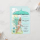 Convite de lingerie para chá de lingerie da noiva apresenta flores tropicais azuis e verdes, guarda-chuva e noiva loira. Disponível com cabelo loiro, castanho e ruivo e pele clara e escura.