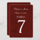 Este bonito número da mesa de burgundy adiciona um toque elegante à sua mesa de casamento. Os números 1 a 12 foram feitos por personalização para você, mas todo texto é personalizável para que você possa adicionar tantos números de tabela quanto precisar.