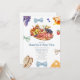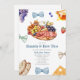 Tema de chá de fraldas de conselhos e tigelas com Ilustração de um conselho de charcutaria rodeado de gravatas arcos, fruta, queijo, pão e mel.
