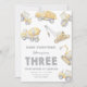 Three & Thriving! Watercolor Construction Vehicle 3rd Birthday Invitation