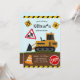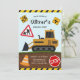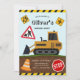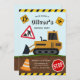 Construction site birthday party invitations featuring a bulldozer and an excavator.