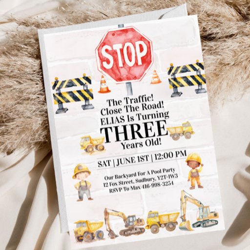 Convite Construction Themed Children's Birthday Invitation