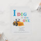 Let your little builder dig into their big day with these fun construction-themed birthday invitations! Featuring a vibrant illustration of a yellow bulldozer, this design perfectly captures the excitement of turning one. The playful "I Dig Being One" message is ideal for a toddler's first birthday celebration. These invitations are a fantastic way to set the tone for a construction-themed party, ensuring all your guests are ready for some serious fun. Get ready to dig into the celebration!