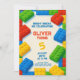 Celebre o dia especial do seu filho com um convite de aniversário tema blocos de brinquedo, brilhante e alegre! Perfeito para pequenos criadores e construtores, este convite editável apresenta blocos coloridos, tipografia divertida e muito espaço para personalizar com os detalhes da sua festa.