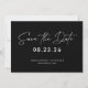 Convide os convidados para o seu casamento com este convite de save the date contemporâneo, apresentando uma fonte de letra moderna combinada com uma fonte elegante simples em fundo preto. Este convite de save the date é perfeito para qualquer época do ano.