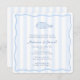 Modern Fish Fry engagement party or wedding shower invitation design featuring original doodle style illustration elements. Shown here in blue and white blue please note ALL colors of all elements can be customized (stripes, background, fish, wavy border). All artwork in this invitation collection is my own original work (hand drawn and / or hand painted).