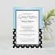 Estes sofisticados convites de Quinceañera de dois lados, para o Aniversário de 15 da sua filha, são desenhados com bolinhas brancas padrão sobre preto e um gradiente azul. Escolha seu tipo de papel. Linen seria uma escolha perfeitamente elegante para esta design.