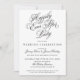 Convites de festa de casamento "Feliz Nunca Depois", com belos florescimentos tipográficos. O texto do roteiro diz "Felizmente, nunca depois da festa" a tinta preta, com um design de estrela no backer.
