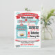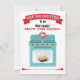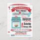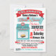 Retro Gênero no estilo poster super fofo e moderno Revela convites para chuveiros de bebês "Bun in the Oven" com aqua e forno de safra vermelha com tipografia e ilustrações divertidas. Ilustração desenhada à mão por McBooboo.