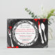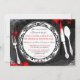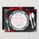 Convidado do Janto Mistério de Assassinato. Este convite para o Halloween inclui uma placa janta com florescimento preto úmido e crânios fora do chão e relusão prateada nas bordas externas. O fundo é preto com inchaço de pingos e um candelabro aninhado entre a relva. Um convite para festas de excelente para o Halloween ou festas de janto com um toque!